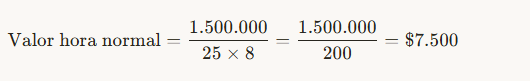 Supongamos un trabajador con salario mensual de $1.500.000 y jornada diaria de 8 horas: